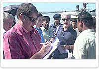 国連ミッションのメンバーは、地元の救援センターに列を作る人々に食料袋を配布する仕事に参加しました。そこで、チームはサイクロンの生存者の話に耳を傾けました。