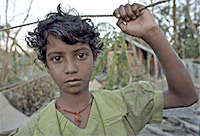 | サイクロンによって崩壊した村で。 自分の家近くに立つ少女リサ、9歳。 |
