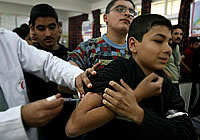 | ガザにあるスレイマン・スルタン小学校で予防接種を受ける男の子。 |