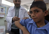 | ガザのスライマン・スルタン小学校ではしか、おたふく風邪、風疹の予防接種を受ける子ども。 |