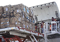 | パナマのトクメン空港で救援機に積み込まれるユニセフの支援物資。 |