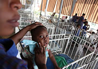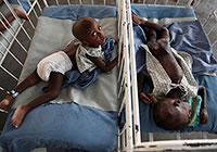 | ポルトープランスにある食糧配布センターの子どもたち。最も幼い子どもたちが、最も弱い立場にあるので、ユニセフは、2歳未満の子どもたちの栄養面の支援を行っています。 |