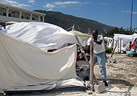 | ドミニカ共和国のジマニにあるプエン・サマリターノ病院に作られたテント村。被災者は、大きな余震を恐れ、屋内に留まることを恐れている。 |