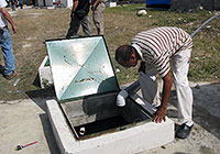 | サントドミンゴから駆けつけたユニセフの水と衛生担当官は、施設が飽和状態になっていたジマニとフォン・パリジャンの治療センターに、新しい貯水タンクとトイレを設置した。 |