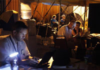 | ユニセフのスタッフは、ハイチのポルトープランス空港近くの国連ハイチ安定化ミッションに設置された避難テント内の事務所で、ランプの光だけで働いています。 |
