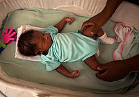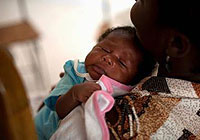 | 震災後、ポルトープランスで生まれたマリエちゃん。生まれてすぐにHIV感染予防のための治療を受けたので、マリエちゃんがHIVウィルスに母子感染した可能性は、非常に低くなっています。 |