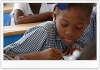 子どもたちを大切に育てる安全な教育環境を確保することは、震災後のハイチの最優先課題のひとつです。セリーヌ・リラボイス学校では、ハイチ政府によって、全ての児童・生徒に給食が提供されています。ユニセフは、子どもと先生方のための支援の一環として、教材などがセットになった“学校キット”を提供。年内に、ハイチ全土の学校約2,000校に、合計約72万セットの学校キットが配布される予定です。