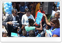 式典に参加したジョエル・デスロジャーズハイチ教育大臣は、次のように述べました。「ハイチ政府は、今年中に、震災以前に学校に通っていた子どもたちを学校に戻すことだけでなく、全ての子どもを学校に通わせることを目標にしています。」「全ての子どもたちが学校に通わなければなりません。」