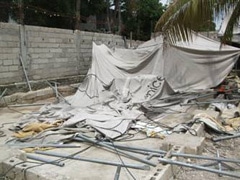 9月24日の暴風雨によってテントの学校がボロボロに・・・ |
