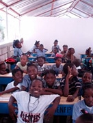 仮設教室が建てられても、ハイチの子どもたちの環境はまだ厳しいのが現実です。この写真の学校に通う生徒の中にも、キャンプから通っている子どもがいました。