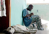 | 母の友人が借りてくれたポルトー・プランスの家で。学費を払えず学校に行けないクリスチャンさんは、ブレスレットを作って時が過ぎるのを待つ。 |