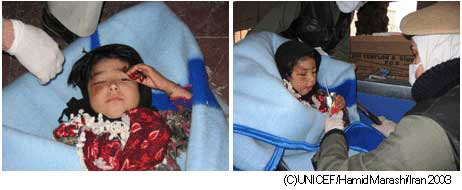- 親や保護者を失い福祉省が運営するケルマンの保護センターに送られた子どもの数は100人を超えた。福祉機関が、バムに移動式の子ども用保護ユニットを設置し、親や保護者とはぐれた子どもたちの身元確認を行ったり、保護とケアを与えたりしている。赤十字国際委員会と協力して、子どもたちの親探しを急ぐ必要がある。