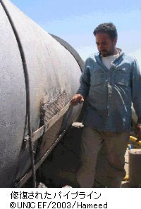 「爆発によって、パイプラインの側面に直径1.5メートルほどの大きな穴があき、何万リットルもの水が噴き出し、道路にあふれました」ユニセフの水担当技術者のサイード・ハミード氏は述べます。「これにより、多くの住民がもっとも暑い時期に水を得られなくなり、迅速に水のサービスを復旧することが重要でした」