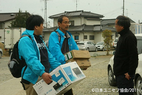 まず行ったことは、避難所などへの支援物資の提供や、世界各地で支援活動に携わるユニセフ専門家の被災地への派遣です。首都圏でも物資や燃料が不足する中、日ごろからご協力いただいている多くの企業や団体のご尽力も得て、また被災3県のユニセフ協会との協働により、物資だけでなく輸送手段も確保することができました。
