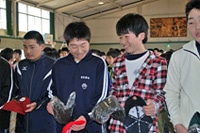 | お礼の言葉を述べる閖上中学校野球部の大橋淳貴主将。 |