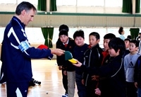 平山和紀閖上小学校長は、「子ども達の顔がぱっと明るくなった。ありがとうございます」と目に涙を浮かべて日本ユニセフ協会スタッフに御礼の言葉をかけてくださいました。