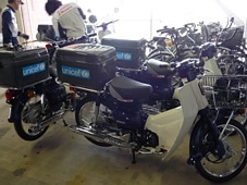 また、日本ユニセフ協会は、被災した各市町村の保健所が巡回診療や訪問看護などを再開できるよう、オートバイや車両の提供を計画。震災の影響で自動車等の生産も大きな支障を受ける中、ホンダドリーム東京とホンダカーズ東京中央の協力により、原付オートバイ18台と自動車39台が確保され、各自治体に提供されました。