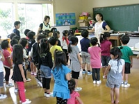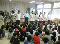 8月1日、東日本大震災で大きな被害を受けた私立ふじ幼稚園で、臨時保育が再開されました。震災から約5ヵ月ぶりに再開された臨時保育でしたが、この日集まった子どもたちは70名以上。臨時保育の再開場所となった真庭区民会館には、早朝から保護者に連れられた子どもたちがぞくぞくと集まり、久しぶりの友だちとの再開を喜び合っていました。