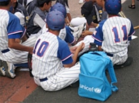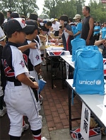 日本ユニセフ協会は、東日本大震災により、予定より3ヵ月遅れとなる8月16日に開催された第34回宮城県スポーツ少年団軟式野球交流大会(ジャンボ大会)開会式で、大会に参加する小学生たちの熱中症対策のためのアイスパックを支援しました。