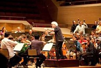 | 11月23日、ベルリンフィルは、「TDKオーケストラコンサート2011公開リハーサル」に宮城県から子どもたちを招待。 | 樫本氏や、21日に仙台を訪問したメンバーらと、「TDKオーケストラコンサート2011公開リハーサル」に招待された子どもたち。 |
