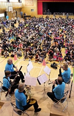 | 21日に仙台市内の榴岡小学校体育館でミニコンサートを開催しました。 |