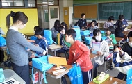 学用品は、一人分ずつ、学年ごとのニーズに合わせてセットされ、かばんに入れて届けられました。また学校内の清掃や備品の搬入など、子どもたちを迎える様々な準備の影には、たくさんのボランティアの方々の協力がありました。