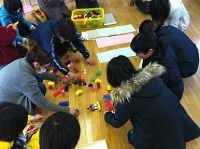 子どもたちは、日常の自然な表現方法である遊びを通して、自分の気持ちや考えを表現し、気持ちの整理や体験の対処法を学んでいきます。子どもたちのそうした“遊び”を心のケアの観点から支えていく「プレイセラピー」の研修を、日本プレイセラピー協会の協力を得て、被災地で子どもたちに関わる教員や保育士、ボランティア、児童相談所の職員等を対象に実施しました。研修を受けた方々からは、「震災の後、子どもへの接し方が分からず戸惑っていたので、研修を受けてよかった」「怖いおもちゃなどは仕舞っておいたほうがいいと思っていましたが、恐竜や兵士などを使って、子どもたちが自分の恐怖を表現できることを知りました。早速明日からとりいれていきたい」といった感想が寄せられています。