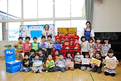 最後に、お待ちかねのお手紙が、子どもたちに手渡されました。代表の4人が前に出て、ヘレンさんとユディスさんからお手紙の入った箱を受け取りました。箱の中からは綺麗な色で塗られたお手紙がたくさん入っていました。こうしたお手紙には、温かいメッセージと共に、着物を着た女の子の絵やウクライナの民族衣装を着た女の子が一緒に描かれている絵もありました。また、ハンガリーの男の子からのお手紙には「日本のみんなの幸せを祈っています」というメッセージも添えられていました。