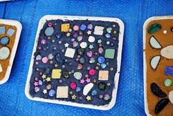 参加した子どもたちは、ビーズやお人形、ビー玉など、思い思いの大切な品物を、お父さん、お母さんと相談しながら埋めていき、出来上がった「壁」を見せ合いながら「これ、僕の壁!」「かわいい!」「これが本当に壁になるの?」「楽しい!」ととても嬉しそうな様子で話してくれ、左官の渡辺さんは「こんな壁、世界中どこにもないよ!想像していたよりもみんな、ずっとすごい!」と驚いていました。