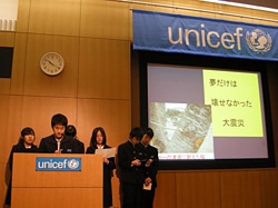 4月18日(木)、ユニセフハウスのホールには、女川中学校の子どもたちの、「つらい経験に向き合って、強く生きたい」という力強い声が響きました。