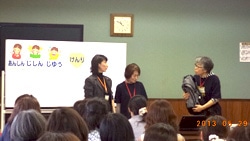 | 「障がいのある子どもへのCAPプログラム」のためにJ-CAPTAが最近開発した『障がいのある子どもへのCAPプログラム』。大船渡と釜石の研修会では、通常のプログラムに加え、障がいのある子どもたちに関わる問題も取り上げられた。 |