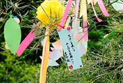 | もう一つの短冊には、「『心を整える。』を買って下さった日本中の人たちの想いが子どもたちに届くように!!」との願いが。 | 自分で作った飾りをうれしそうに見上げる子どもたち。 |