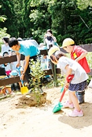 訪問の最後には、“ユスラウメ”の苗木を記念樹として園庭に植えました。ユスラウメの花言葉は、「輝き」「郷愁」。子どもたちの毎日が光り輝くものでありますように、また、春には桜に似た花、夏にはサクランボに似た小さな赤い実で、子どもたちの生活を彩って欲しいという長谷部選手の想いがこめられたこの木が、子どもたちの成長を見守っていきます。