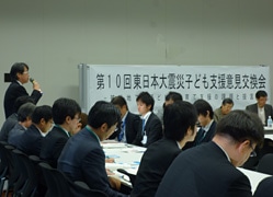世界各地の現場で20年以上にわたって積み上げられたユニセフの知見=「子どもにやさしい空間」を通じた支援活動を、日本の災害支援でもスタンダードにしていただければ。そんな思いから、11月8日、本書を、参議院議員会館で開催された、国会議員、省庁関係者、支援団体関係者や専門家らが参加する「第10回東日本大震災子ども支援意見交換会」で紹介しました。