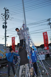 神奈川県ユニセフ協会を中心に午前中から約6時間、凍える外での作業を続けてようやく完成したツリー。夕方行われた点灯式で光が灯った瞬間、会場に歓声が広がりました。