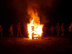 | 2013年8月に岩手県八幡平市で実施した「里親子キャンプ」。キャンプファイアーは、子どもたちに大好評。 |