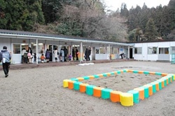 | 竹駒保育園の仮設園舎は、2012年4月に完成。新園舎が完成する翌年3月まで使われた。(2012年4月撮影) |