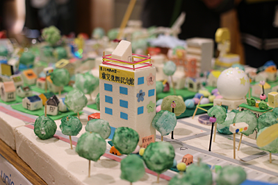 「未来の七郷〜20才になったときのまちの姿」をテーマに、仙台市立七郷小学校の子どもたちが10〜15年後のまちの模型を制作。