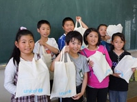 On this occasion, the final sets of school supplies were delivered to Osanai Primary School, which has participated in UNCIEF fundraising for over 20 years. Many other schools in the disaster area have also supported the activities of UNCIEF for many years. Moreover, every year many children from these schools visit UNICEF House in Tokyo for tours.