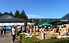 | On a hot summer day the students carefully rehearse their moves while gearing up for their matches. | The opening ceremony. |