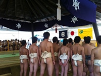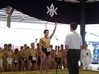 Next, Hiromasa Iwama of Otsuchi Junior High School, the winner of last year’s competition and also a victim of the Great East Japan Earthquake, returned the championship flag and made a pledge for fair play, saying, “Our school was severely damaged in the disaster, but we pledge to present those that supported us with a good show and wrestle fair.” A champion flag was donated by local junior high school graduates as the real champion flag was washed away in the tsunami.