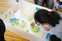 | Fifth graders enjoy creating a model "Future Classroom" during the workshop. |