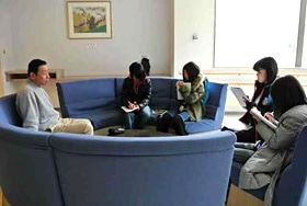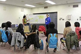 子どもたちは「はまなす館」の職員、渡部さんを取材しました。