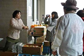 野菜などを売っているおじさん。「一人で流されちゃったら寂しいけれど、みんなで流されたからしょうがないよ」 |