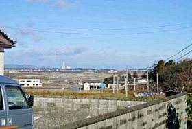 車はさらに原釜へと向かいました。 このあたりに親戚やおばあちゃんの家があるという乃愛さん。「あれが友だちのお母さんのやってた旅館・・・。あれがおばあちゃんの家」。親戚や知り合いの多くが津波被害の影響を直接受けているのでしょう。