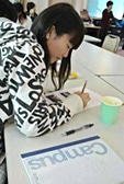 【面白い写真で賞】 陽さんの写した、通訳の「こまこさん(小松さん)」の写真が選ばれました。 |