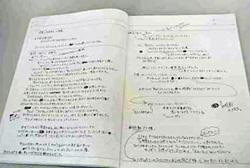 「ふじわらカメラマンのNOTE」と書かれた樹里さんのノート。取材した内容がとても丁寧にまとめられています。 |