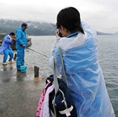 子どもたちがバーベキューや魚釣りを楽しむ場所、フィッシャリーナ。もともと広場になっていたこの土地もまた津波の被害を受けて施設は崩壊。現在は広場の合った場所は瓦礫置き場となっています。子どもたちは風景を黙々と写真に収めると、海辺でタナゴ釣りをしているおじさんたちのもとを訪れました。おじさんの話によると、この海岸は漁師さんだった人や町の人たちがふらりと訪れて、津波のくる前のことや将来のことなどについて言葉を交わしあう交流の場にもなっているそうです。
