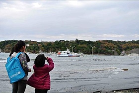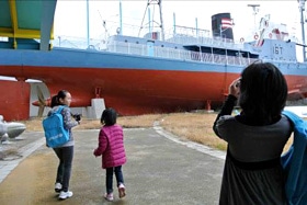 「あそこに見えるのは金華山まで向かう船です。一、二年生が行く予定だったんだけど(今年は)地震で駄目だったんだって。前は桟橋だったところも今は沈んでしまって、船の数も少なくなりました。おじいちゃんがミンククジラを捕っていて、小さな船に乗せてもらって遊んだりしていました」