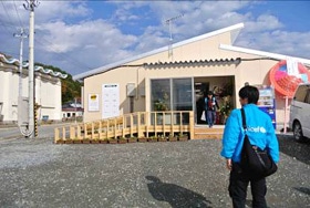 チームAとCが次に訪れたのは牡鹿公民館の隣に新設された仮設の商店街「のれん街」。この建物はドイツのNPOの支援によって作られたそうです。中にはお寿司屋さんや雑貨屋さん、電気屋さんなど十数のお店が営業しています。